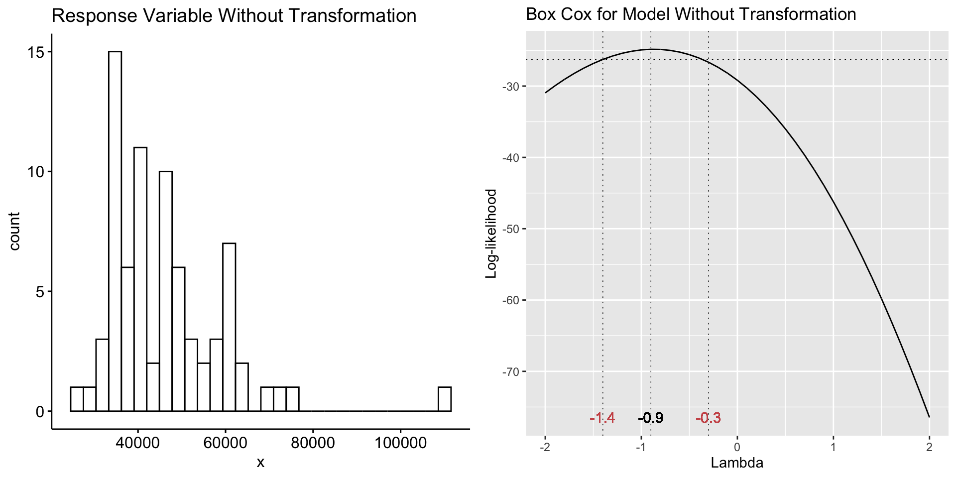 How much prediction power is lost by not using a transformed response variable in a linear regression model?
